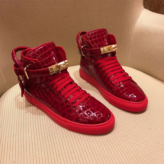 Men’s Luxe Croc-Embossed High-Top Sneakers – Red and Black Leather Edition