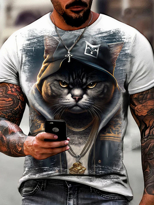 Summer Men‘S T Shirt Casual Short Sleeve Tee Cartoon Animal Print T Shirt Street Fashion Sportshirt Male Oversized Clothing